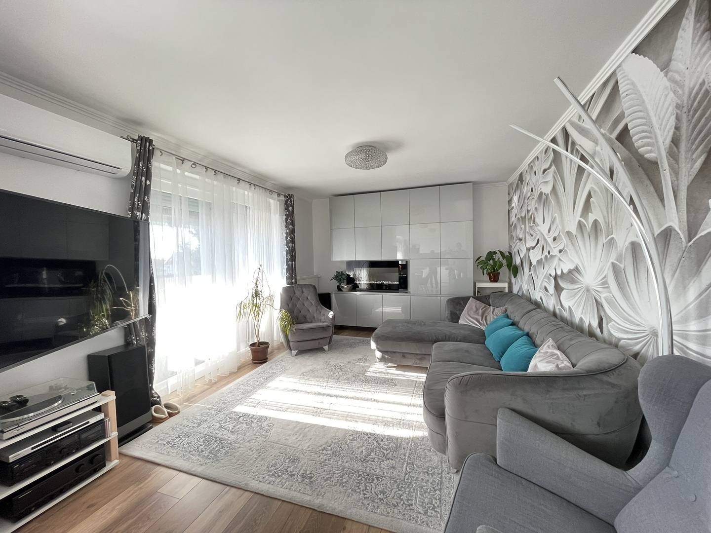 A lakás magas minőségben kivitelezett, a vételár része a beépített konyhabútor, a fürdőszobai, ill. előszoba bútor.